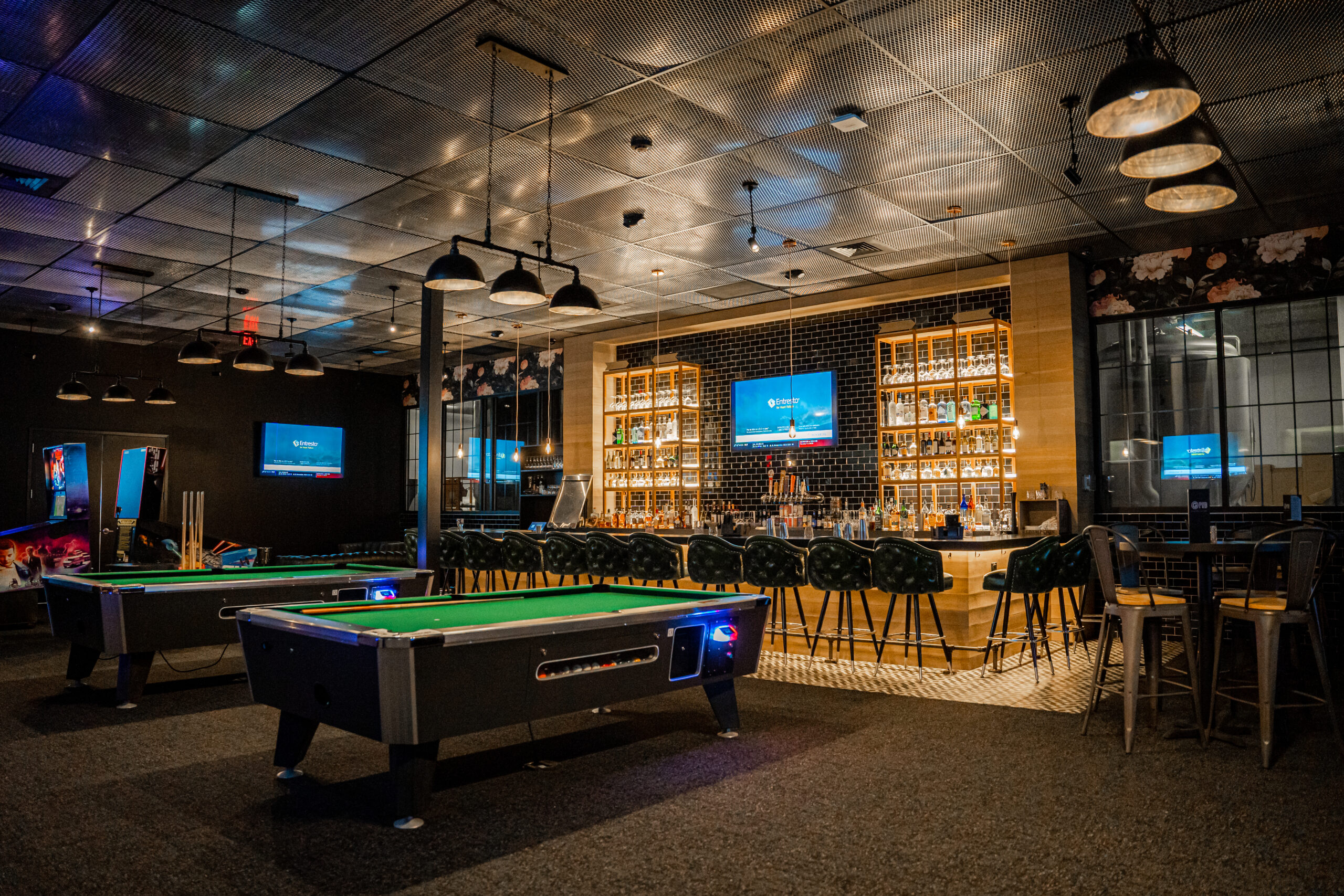A relaxed & social atmosphere that offers a combination of comfortable seating, billiards tables, and shuffleboard for all to enjoy.