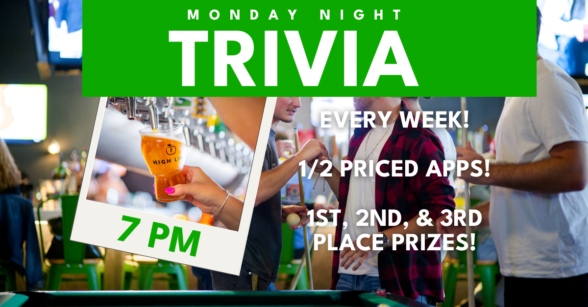 Come test out your trivia skills with the BestTriviaEver.com team, and enjoy ½-priced apps from 7-9pm in the main bar and dining room every Monday at GPub