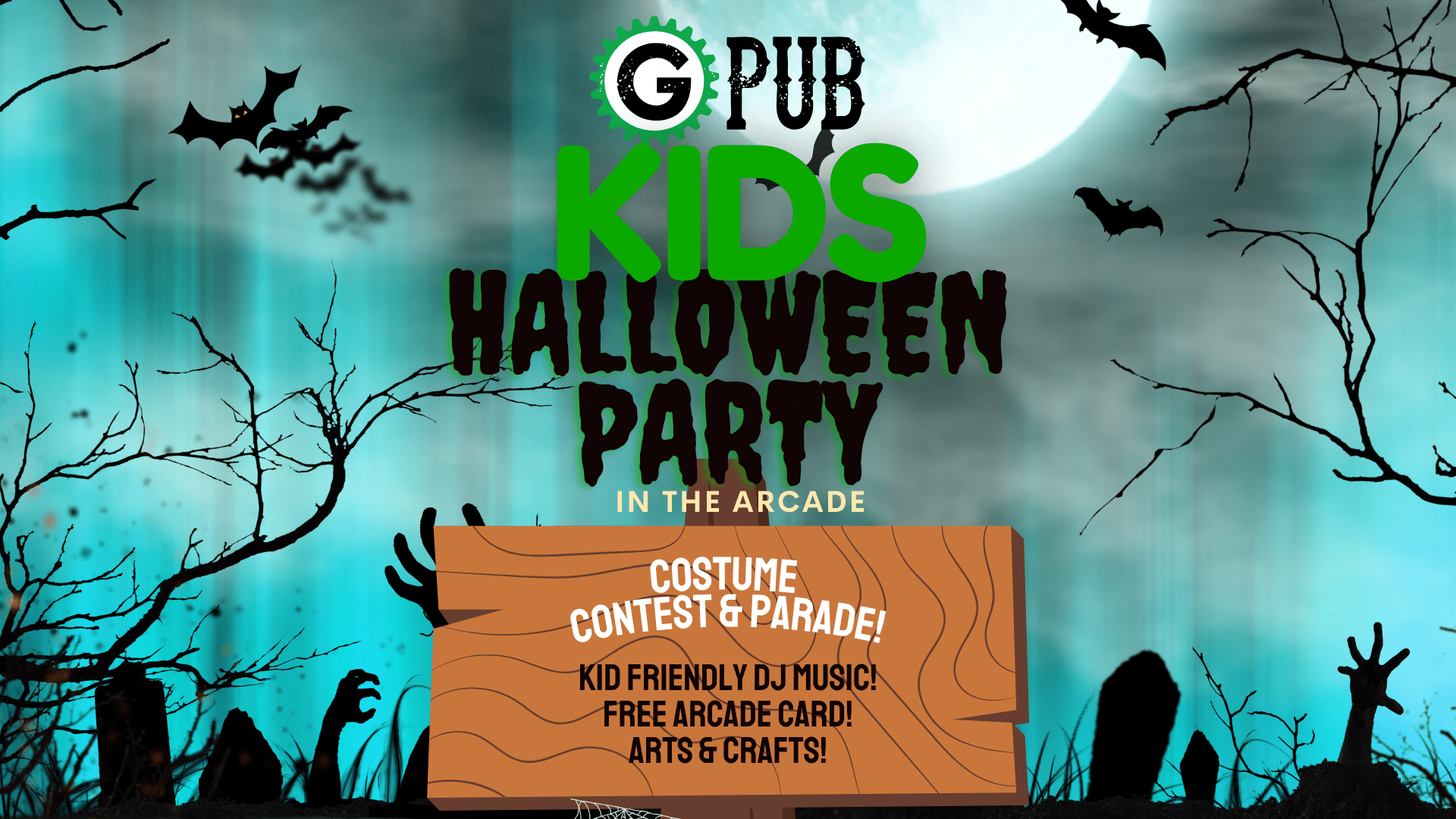 On Saturday, October 26th from 5-7pm, get dressed up in your Halloween costume for a costume contest, parade around GPub, dancing to music by a kids DJ, and play fun games including Pin the Tail on the Skeleton and Witch Hat Ring Toss. For the little ones, there will be a Halloween Sticker Wreath-Making station to work their craft magic and make something special to take home! Each kid will receive a free $5 arcade card to play a game or two in GPub’s expansive arcade!