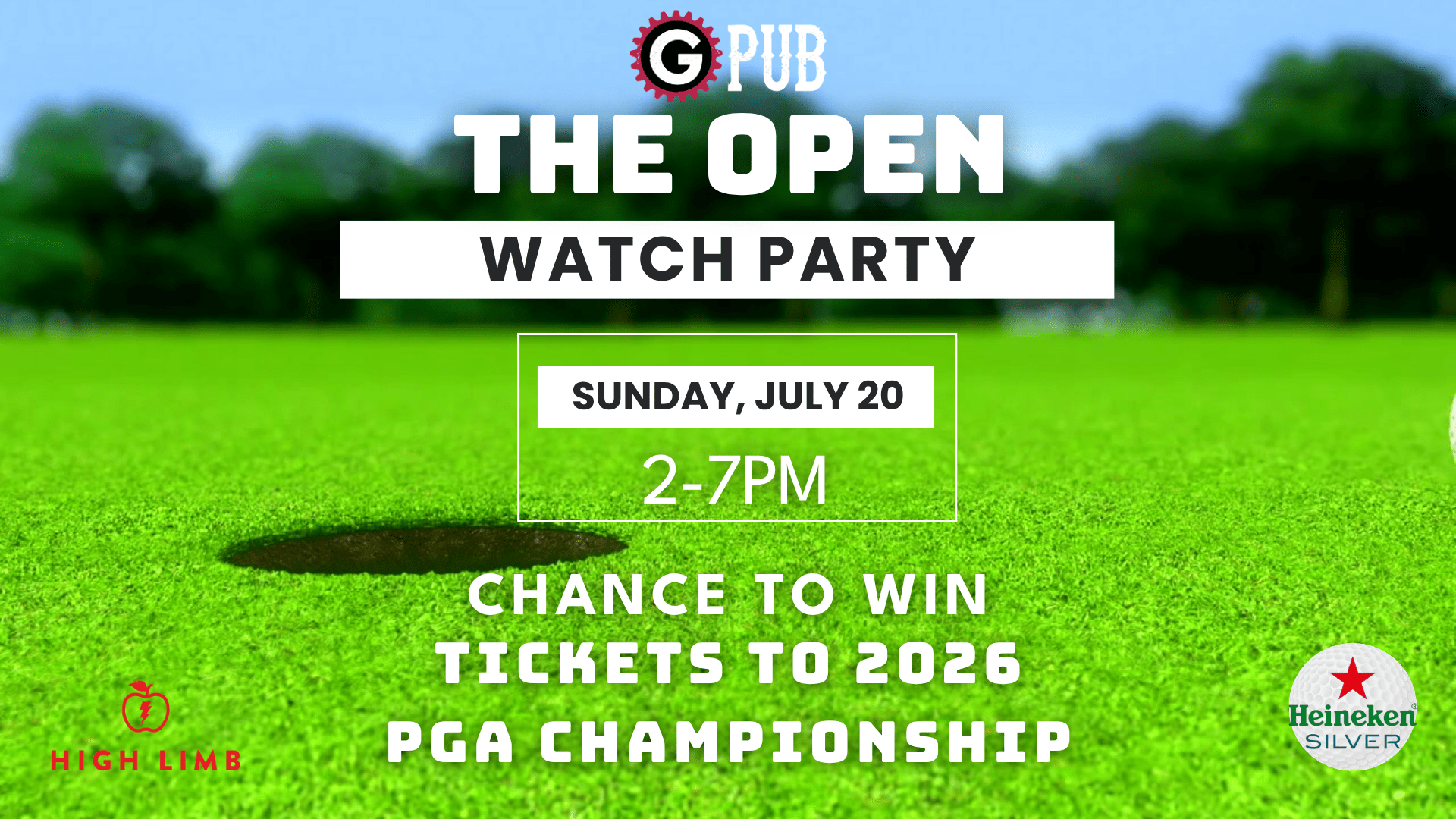 We’ve got you covered with every shot during the final round broadcast of The Open Championship Final Round on Sunday, July 20th from 2-7pm at GPub!