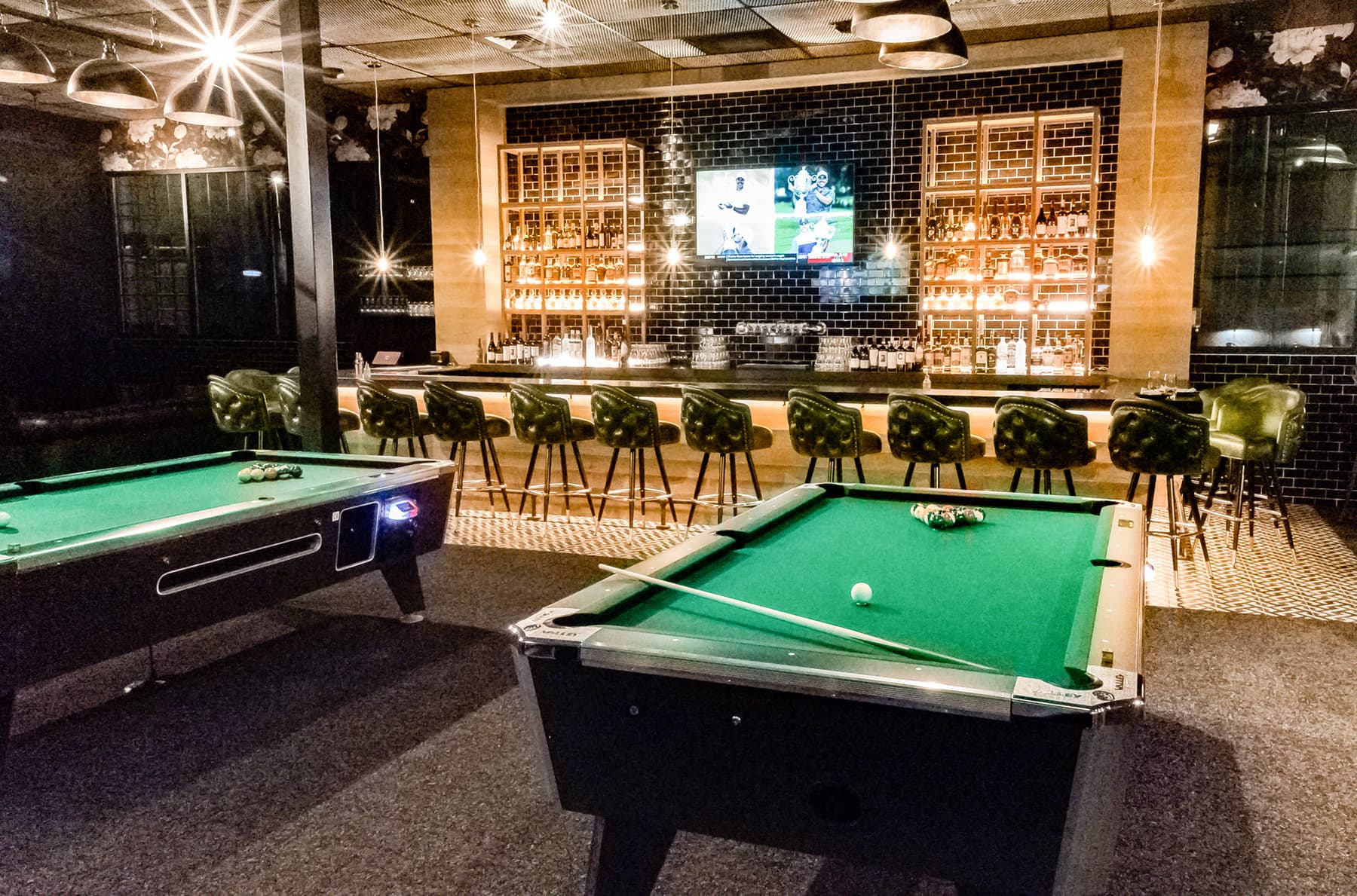A relaxed & social atmosphere that offers a combination of comfortable seating, billiards tables, and shuffleboard for all to enjoy.